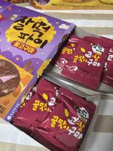 個人的に韓国のお菓子の中で一番好きな찰떡파이(チャルトックパイ)の꿀고구마(クルコグマ)